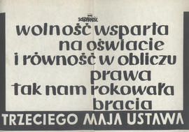 Na druku widnieje fragment tekstu pieśni „Maj” autorstwa Stefana Starzyńskiego h. Doliwa (1784- ok. 1855); wydana w 1830 r. w Warszawie w tomiku poezji pt. Śpiewki i wiersze Podolanina z lat 1828, 1829 i 1830 z dołączeniem kilku innego pióra; u samej góry logo Solidarności