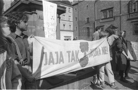 Wrocław, 24-04-1989, Rynek. Protest ekologiczny przeciw energetyce jądrowej zorganizowany przez Federację Zielonych pod hasłem: "Anty-Atom". Fot. NAF Dementi