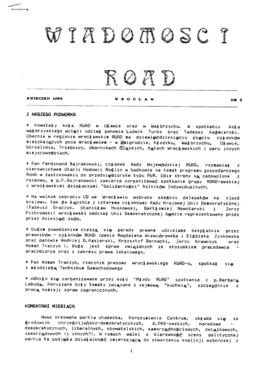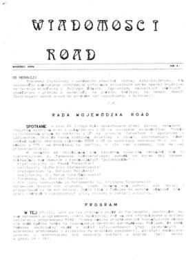 Sprawozdanie z dyskusji po posiedzeniu Rady Naczelnej Ruchu Obywatelskiego Akcji Demokratycznej. Statut ROAD oraz komentarze. Projekt tez programowych klubu ROAD. Sprawozdanie z działalności wrocławskiego koła ROAD. Komentarze do projektu Ustawy o Ochronie Życia Poczętego. Aktualności z działalności ROAD.