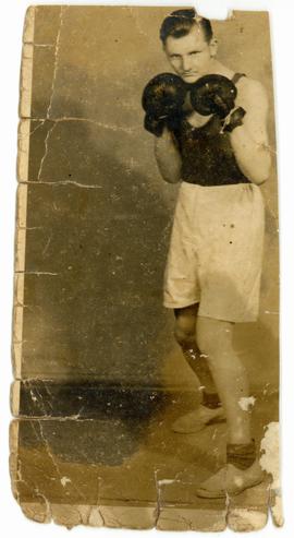 Karol Sawicki, bokser- fotografia sytuacyjna (w pozie bokserskiej).