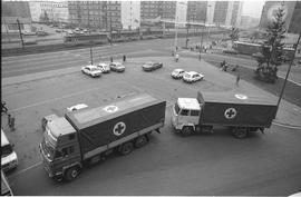 Wrocław, 31-12-1989. Wyjazd konwoju z pomocą humanitarna dla Rumunii zorganizowany przez wrocławską „Solidarność”. Fot. NAF Dementi
