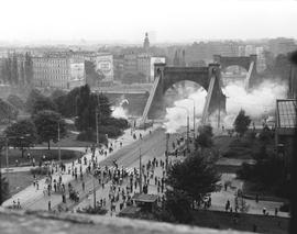 Starcia mieszkańców Wrocławia z oddziałami milicji z okazji manifestacji "Solidarności" w drugą rocznice podpisania porozumień sierpniowych. 50 tysięcy wrocławian wyszło z domów na pokojową manifestację, która szybko przerodziła się w regularną bitwę uliczną. Z jednej strony - nieuzbrojeni cywile, kontra regularne siły milicji i wojska uzbrojone w ciężki sprzęt i ostrą amunicję. Na zdjęciu Most Grunwaldzki.