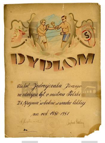 Dyplom wydany przez Radę Główną Zrzeszenia Sportowego „Spójnia” dla Jerzego Jędrzejczaka za zdobycie tytułu wicemistrza Polski Z.S. „Spójnia” w boksie w wadze lekkiej.