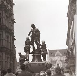 Ciężarówka studenckiego Teatru "Nawias" (teatr studentów Uniwersytetu Wrocławskiego) pod sklepem "Dom Pani" (ul. Świdnicka / pl. Teatralny; dawny Dom Handlowy "Pod Świętym Hieronimem", później Pub "Pod Zielonym Kogutem")