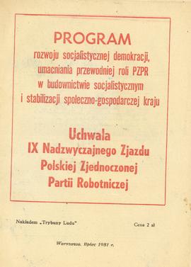 Broszura wydana przez Komitet Centralny PZPR na łamach „Trybuny Ludu” z lutego 1986 r. Głównym tematem programu jest umacnianie socjalizmu w Polsce Ludowej, poprzez przechodzenie przez kolejne etapy rozwoju gospodarki socjalistycznej. Tekst zawiera odniesienia do rozwoju systemu politycznego, jak również do kultury, nauki.