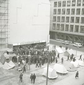 Praga, 01-10-1989, Ambasada RFN. Niemcy z NRD (Niemcy Wschodnie) koczują pod ambasadą niemiecką w oczekiwaniu na azyl w RFN. Fot. NAF Dementi