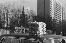 Warszawa, wrzesień 1989. Pl. Defilad, sprzedaż kaset audio-wideo w przyczepie kempingowej. Fot. NAF Dementi