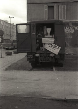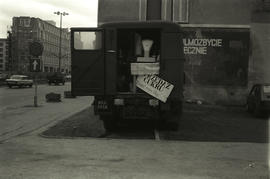 Wrocław, 1990. ul. Kazimierza Wlk., sprzedaż cukru bezpośrednio z samochodu dostawczego. Fot. NAF Dementi