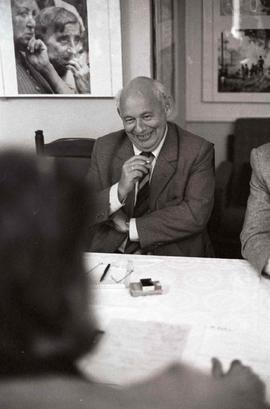 Podseria 4 fotografii Jerzego Urbana w redakcji lewicowego wrocławskiego tygodnika "Sprawy i Ludzie" wydawanego w latach 1982 - 1992 r. Redaktorem naczelnym był Julian Bartosz.
