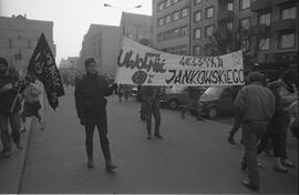 Wrocław, 27-01-1989. Protest Ruchu Wolność i Pokój przeciwko kolegiom ds wykroczeń i ws. uwolnienia Wojciecha Jankowskiego, skazanego za odmowę służby wojskowej. Fot. NAF Dementi