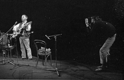 Wrocław, 03-11-1989 (do 05-11-1989) Przegląd Czechosłowackiej Kultury Niezależnej. N/z Karel Kryl podczas koncertu w Teatrze Polskim. Fot. NAF Dementi