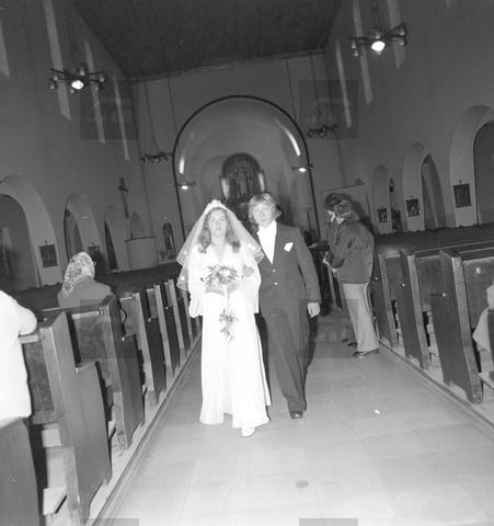 N/z młoda para wychodząca z Kościoła Świętej Rodziny.