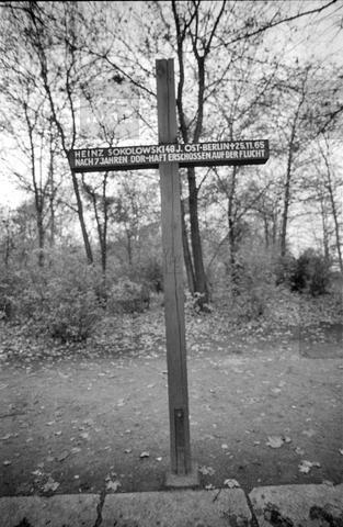 Berlin (Niemcy), 11-1989. Mur Berliński. Miejsce upamiętnienia osób zastrzelonych podczas próby ucieczki – przez mur berliński – z Niemiec Wschodnich na Zachód. Fot. NAF Dementi