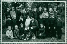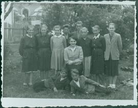 Zakończenie roku szkolnego 1961/1962 w szkole podstawowej w Zwróconej. Uczniowie klasy VI z nauczycielkami: m.in.: Teresą Gabrysz (drugi rząd, pierwsza z lewej) i Stanisławą Siekańską (drugi rząd, druga z prawej).