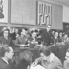cegiełka o wartości 100 zł; grafika przedstawiająca gmach Komitetu Centralnego Polskiej Zjednoczonej Partii Robotniczej Warszawa, Nowy Świat 6/12; obecnie Centrum Bankowo-Finansowe
