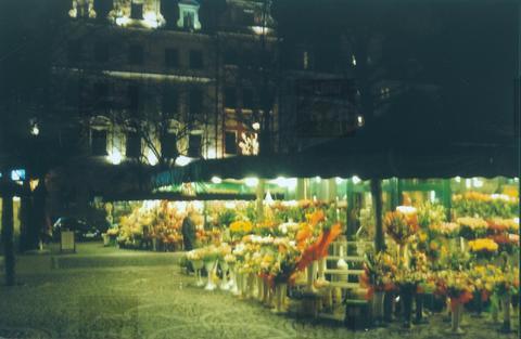 Plac Solny we Wrocławiu, kwiaciarnie w grudniowy wieczór.