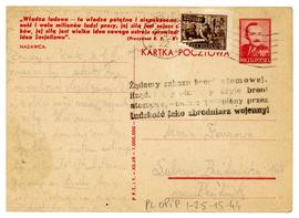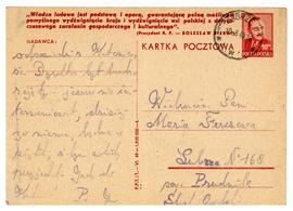 Pocztówka ks. Władysława Błaszczyka do, Marii Fercz w sprawie Jana Fercza.