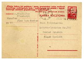 Pocztówka Jana Fercza do żony, Marii Fercz ze szpitala we Wrocławiu.