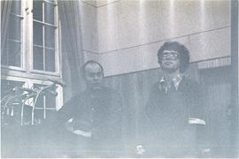 Spotkanie na sali wykładowej Politechniki Wrocławskiej z Jackiem Kuroniem (po lewej, polskim politykiem, jednym z przywódców opozycji w PRL).