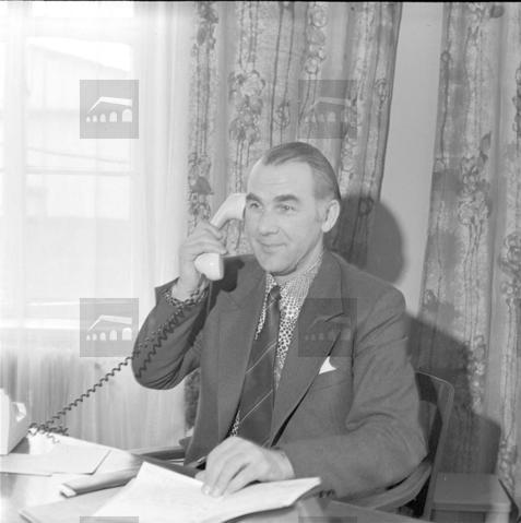 N/z pracownik biurowy (najprawdopodobniej szczebla kierowniczego) w biurze Karkonoskich Zakładów Maszyn Elektrycznych KARELMA.