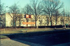 dekoracja z okazji VII Zjazdu PZPR [Warszawa, 8-12.12.1975 r.] w niezidentyfikowanym miejscu we wrocławskiej dzielnicy Śródmieście [fotografia wykonana na zlecenie Komitetu Dzielnicowego PZPR Wrocław-Śródmieście];