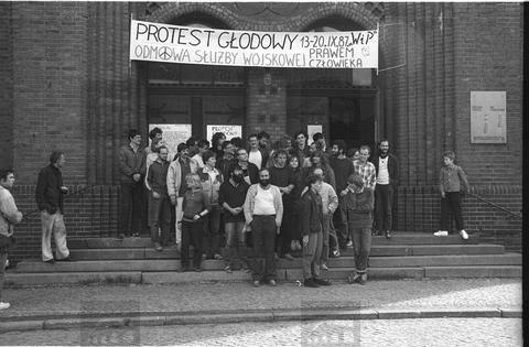 Bydgoszcz, 13-09-1987 (do 20-09-1987) Protest głodowy Ruchu Wolność i Pokój ws. uwolnienia więźniów sumienia: Oskar Kasperek i Piotr Różycki, skazanych za odmowę służby wojskowej. Fot. NAF Dementi
