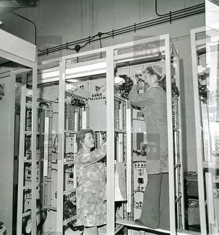 Wrocławski "Elektromontaż" m.in. dostarczał urządzeń służących do sterowania i obserwacji mechanizmów elektrycznych zasilających linie technologiczne Huty "Katowice". N/z: montaż elementów kontrolno-pomiarowych i sygnalizacyjnych w szafie sterowniczej dla Huty "Katowice".