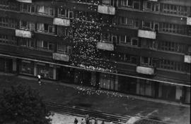Wrocław 02-06-1986 pl. Grunwaldzki protest ws. uwolnienia Władysława Frasyniuka zorganizowany przez Regionalny Komitet Strajkowy Solidarność Walcząca Niezależne Zrzeszenie Studentów
