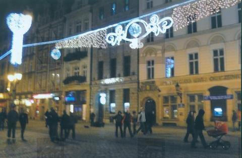 Wrocławski rynek, pierzeja wschodnia w bożonarodzeniowej dekoracji.