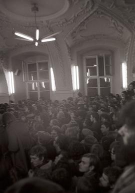 Spotkanie studentów z Adamem Michnikiem na Uniwersytecie Wrocławskim w marcu 1981r w ramach tzw. Wszechnicy. Spotkanie odbyło się w Sali Nehringa na Wydziale Filologicznym przy placu Nankiera 15.