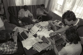 Wrocław, 15-05-1988 (do 22-05-1988) Protest głodowy zorganizowany przez Solidarność Polsko-Czechosłowacka (SPCz) i Ruch Wolność i Pokój (WiP) ws. uwolnienia Sławomira Dutkiewicza i Wojciecha Wożniaka a także innych wipowców skazanych za odmowę służby wojskowej.N/z od lewej: Tomasz Wacko, Wacław Giermek, Jacek Czaputowicz, Mieczysław Piotrowski, Wojciech Jankowski, Jerzy ŻurkoFot. NAF Dementi