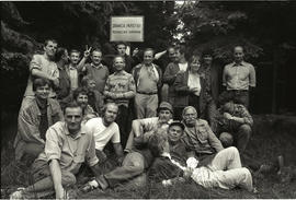 Granica PRL-CSRS, Kotlina Kłodzka, 09-07-1988. Spotkanie polskich i czeskich działaczy opozycji demokratycznej zorganizowane przez Solidarność Polsko-Czechosłowacka (SPCz). W spotkaniu wzięli udział: Piotr Niemczyk, Petr Uhl, Jan Ruml, Józef Pinior, Adam Michnik, Jan Lityński, Mieczysław Piotrowski, Jaroslav Sabata, Stanislav Devaty, Zbigniew Bujak, Anna Sabatova, ks. Vaclav Maly, Jan Carnogursky, Mirosław Jasiński, Zbigniew Romaszewski, Zbigniew Janas, Vaclav Havel, Petr Pospichal, Jan Urban, Danuta Winiarska, Jacek Kuroń, Ladislav Lis, Ivan Lamper i Sasa Vondra. N/z: stoją od lewej: Ivan Lamper, Jan Lityński, Zbigniew Janas, Petr Pospichal, Piotr Niemczyk; w dolnym rzędzie od lewej: Jan Carnogursky, Zbigniew Bujak, Sasa Vondra, Anna Sabatova.Fot. NAF Dementi