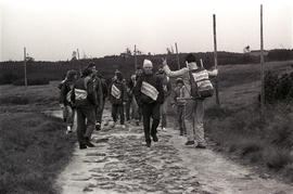 Karkonosze, 12-09-1987. Manifestacja ekologiczna zorganizowana przez Solidarność Polsko-Czechosłowacka (SPCz) i Ruch Wolność i Pokój (WiP) na szlaku turystycznym tzw Przyjaźni Polsko-Czechosłowackiej ws. klęski ekologicznej w Karkonoszach. Fot. NAF Dementi