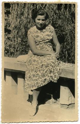 Irena Wojciechowska na ławce w Sopocie, prawdopodobnie początek lat 60. XX wieku