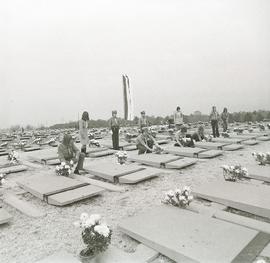Cmentarz Świętej Rodziny przy ul. Smętnej na Sępolnie w Dniu Święta Zmarłych. N/z: Mogiłę prof. Edwarda Marczewskiego, niedawno zmarłego (zm. 17 października 1976 r.) byłego rektora Uniwersytetu Wrocławskiego (w latach 1953-1957), pokrywają jeszcze liczne świeże wieńce i kwiaty.