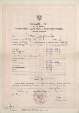 Świadectwo Państwowej Ogólnokształcącej Szkoły Korespondencyjnej stopnia licealnego