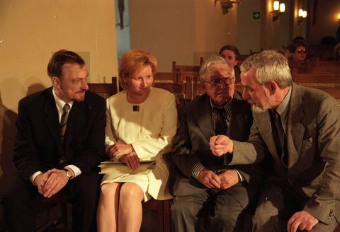 N/z od prawej Bogdan i Barbara Zdrojewscy, Tadeusz Różewicz i Jacek Majchrowski.