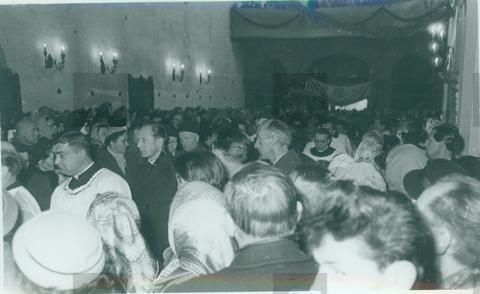 Uroczystość ku czci św. Jacka z okazji 700- lecie jego śmierci w kościele św. Wojciecha; w tłumie widoczny ks. Wincenty Urban [biskup pomocniczy gnieźnieński od 1960 r.]