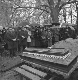 N/z żałobnicy przy grobie na cmentarzu parafialnym pw. Św. Jacka na wrocławskich Swojczycach.