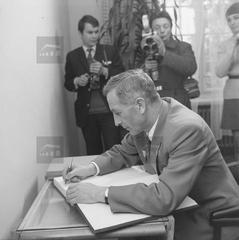 Zdzisław Tomal (na pierwszym planie), wicepremier i członek Prezydium Naczelnego Komitetu Zjednoczonego Stronnictwa Ludowego; zdjęcie wykonane w gmachu Prezydium Wojewódzkiej Rady Narodowej we Wrocławiu (dziś Dolnośląski Urząd Wojewódzki, pl. Powstańców Warszawy 1) w czasie uroczystości wręczenia Z. Tomalowi złotej odznaki "Zasłużony dla Dolnego Śląska"