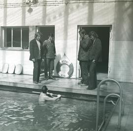 Dzień Otwartych Koszar w Wyższej Szkole Oficerskiej Wojsk Inżynieryjnych im. gen. Jakuba Jasińskiego we Wrocławiu (obecnie po wielu reorganizacjach Wyższa Szkoła Oficerska Wojsk Lądowych im. gen. Tadeusza Kościuszki). N/z: zwiedzanie krytego basenu uczelni.