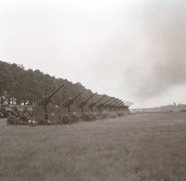 Artyleria rozstawiona nad Odrą na Wielkiej Wyspie. W oddali w tle Mosty Chrobrego.