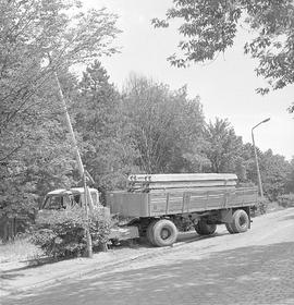 podnoszenie z rowu ciężarówki do przewozu mebli marki Star, która poprzedniego dnia wieczorem uderzona przez inny pojazd wypadła z drogi między Trzebnicą a Wrocławiem (15 km od ówczesnych granic Wrocławia)