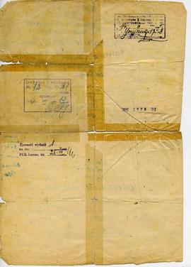 okazicielem dokumentu Franciszek Fokczyński, współpracownik Głównego Pełnomocnika Rządu Rzeczypospolitej Polskiej do Spraw Ewakuacji Ludności Polskiej w właśc.: z Litewskiej Socjalistycznej Republiki Radzieckiej; dokument powstał na odwrociu fragmentu niemieckiego formularza Deutsche Reichsbahn Niemieckich Kolei Rzeszy