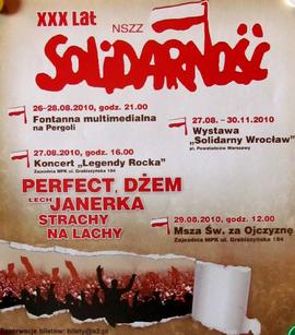 wystawa zorganizowana w ramach obchodów 30-lecia Solidarności we Wrocławiu; Solidarny Wrocław - kierownictwo projektu: Marek Mutor; kierownictwo artystyczne, koncepcja, projekty aranżacji i scenografii: Marek Stanielewicz; konsultacja naukowa: Włodzimierz Suleja; projekt techniczny zabudowy wnętrz: Pracownia Maćków; projekty graficzne: Artur Skowroński; kwerendy, wybór i opracowanie materiałów archiwalnych: Wojciech Kucharski, Jarosław Maliniak; realizacja materiałów audiowizualnych: Leszek Raziuk (Linea), Radosław Poraj-Różecki (Poraj-Media)