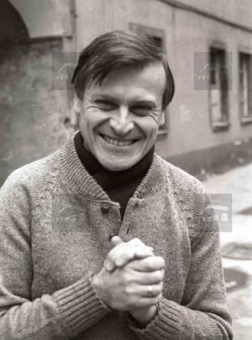 N/z Zbigniew Cynkutis stojący na wrocławskim rynku obok Ratusza.
